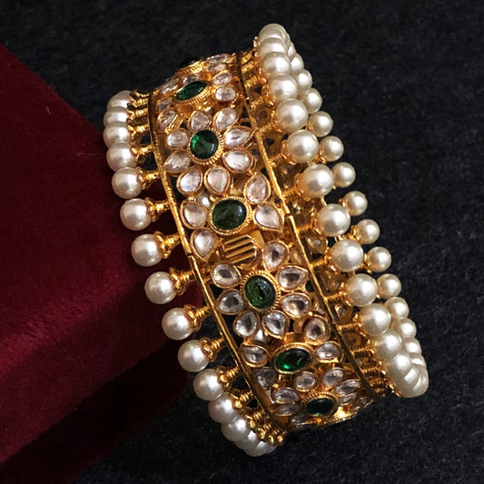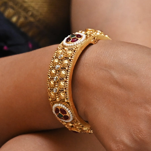 Antique Kundan Kada with Pearl & Meenakari Work