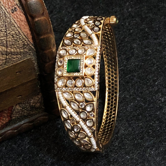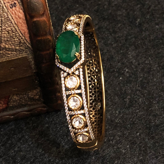 Regal Green Stone Jadau Polki Bracelet